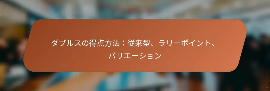 ダブルスの得点方法は、ゲームのダイナミクスを形成する上で重要な役割を果たしており、従来の得点方法は各ラリーの結果を強調し、ラリーポイント得点法はどちらのチームもサーブに関係なく得点できるようにしています。これらのシステムは、プレイのペースや戦略に影響を与えるだけでなく、さまざまな文脈やプレイヤーの好みにも対応しています。これらの得点方法を理解することは、ゲーム体験を向上させたいレクリエーションプレイヤーや競技者にとって不可欠です。 ダブルスの従来の得点方法とは? ダブルスの従来の得点方法は、各ラリーの結果に基づいてポイントが与えられるシステムであり、ゲームやセットの構成に関する特定のルールがあります。この得点アプローチは歴史的な意義を持ち、レクリエーションプレイとプロフェッショナルプレイの両方で一般的に使用されています。 ダブルスにおける従来の得点の定義 ダブルスにおける従来の得点とは、チームがラリーに勝つことでポイントを獲得し、あらかじめ定められたポイント数に最初に達したチームがゲームに勝つ方法を指します。この得点システムは、ラリーポイント得点法と対比されることが多く、ラリーに勝ったチームが得点できるシステムです。 従来の得点では、ゲームは通常4ポイントまでプレイされ、勝つためには2ポイントのリードが必要です。この方法は戦略とチームワークを強調し、プレイヤーは対戦相手を出し抜くために協力しなければなりません。 従来の得点におけるポイントの付与方法 従来の得点では、ラリーに勝った場合のみサーブを行っているチームにポイントが与えられます。受けるチームがラリーに勝った場合、サーブの権利を得ますが、ポイントは獲得しません。これにより、サーブを行っているチームは得点の機会を活かす必要があります。 例えば、サーブを行っているチームがラリーに勝った場合、ポイントはゼロから1に進みます。さらに勝ち続けると、4ポイントに達してゲームに勝つことができますが、2ポイントのリードが必要です。このシステムは、プレイヤーがサービスゲームに集中し、サーブの利点を活かすことを促します。 従来の得点を使用したゲームの構造 従来の得点を使用したゲームは、通常、セット内に複数のゲームを含むように構成されており、標準的なセットは6ゲームまでプレイされます。チームはセットを確保するために少なくとも2ゲームを勝たなければならず、これによりチームは相手のサーブを破ることを目指す戦略的要素が加わります。 試合は通常、競技レベルに応じてベストオブ3またはベストオブ5セットで行われます。この構造は、プレイ時間を延長し、各ゲームの重要性を高めます。チームは試合に勝つために一貫して良いパフォーマンスを発揮する必要があります。 従来の得点方法の歴史的背景 従来の得点方法は、テニスにおいて何十年も使用されており、その起源は19世紀後半にさかのぼります。この得点システムは、テニスの初期の競技的性質を反映しており、スピードよりもスキルと戦略に重点が置かれていました。 時が経つにつれて、従来の得点は特に主要なトーナメントやプロフェッショナルな環境でその関連性を維持しています。この方法の歴史的な重要性は、ウィンブルドンや全米オープンなどの権威あるイベントでの継続的な使用に見られます。 レクリエーションプレイとプロフェッショナルプレイにおける一般的な使用 レクリエーションプレイでは、従来の得点はそのシンプルさと提供する戦略的深さから好まれることが多いです。多くの地域のクラブやカジュアルな試合ではこの方法が利用されており、プレイヤーがサーブやラリーのスキルを発展させることを促します。 対照的に、プロフェッショナルプレイでは主に従来の得点が特徴であり、特にグランドスラムトーナメントではこの方法が使用されます。これにより、試合が競争的になり、プレイヤーは複数のゲームやセットで一貫したパフォーマンスを示す必要があり、持久力とスキルが際立ちます。 ダブルスにおけるラリーポイント得点システムとは? ダブルスにおけるラリーポイント得点システムは、どちらのチームも得点できる方法であり、どのチームがサーブを行ったかに関係ありません。この得点形式はゲームのペースを向上させ、さまざまなリーグやトーナメントで広く使用されています。 ラリーポイント得点の定義 ラリーポイント得点は、すべてのラリーが1つのチームにポイントを与えるシステムです。従来の得点とは異なり、サーブを行っているチームだけが得点できるのではなく、両チームが相手のサーブでポイントを獲得できる方法です。これにより、よりダイナミックで競争的な環境が生まれます。 このシステムは、バレーボールや卓球などのスポーツで一般的に使用されていますが、テニスやバドミントンのダブルス形式にも採用されています。重要な特徴は