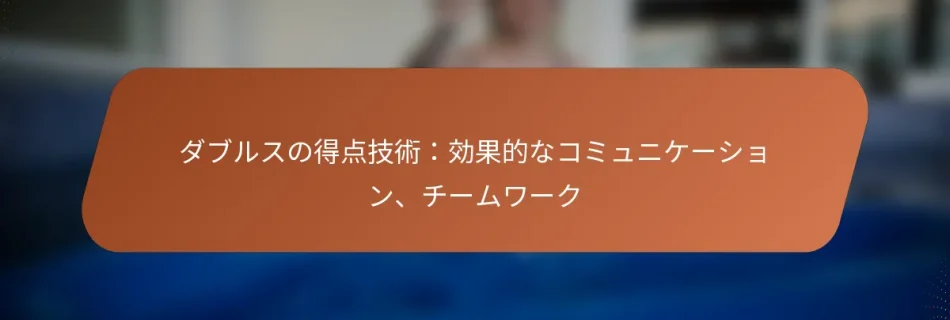 ダブルススポーツにおいて、効果的な得点技術は強力なコミュニケーションとチームワークに根ざしており、これにより選手は動きや戦略を同期させることができます。明確な合図と定義された役割に焦点を当てることで、チームはパフォーマンスを向上させ、エラーを減少させ、得点機会を最大限に活用できます。 ダブルススポーツにおける効果的な得点技術とは? ダブルススポーツにおける効果的な得点技術は、強力なコミュニケーションとチームワークに依存しており、選手が動きや戦略を調整できるようにします。ポジショニング、ショット選択、相手の理解をマスターすることで、チームは得点機会を最大化し、全体的なパフォーマンスを向上させることができます。 最適な得点のためのポジショニング戦略 ダブルスプレーにおいてポジショニングは非常に重要であり、チームがコートを効果的にカバーし、相手のショットに応じて反応できるようにします。選手は三角形のフォーメーションを維持することを目指し、一人がネット付近に、もう一人がコートの奥に位置するようにします。この配置により、ボレーやグラウンドストロークに迅速に反応できます。 さらに、選手は自分の位置を頻繁にコミュニケーションし、混乱を避けるために意図を呼びかけるべきです。たとえば、一人の選手がショットをインターセプトするために前に出る場合、もう一人はバックラインをカバーするために後退する必要があります。この動的なポジショニングは、得点機会を生み出しつつ、相手に隙を与えるリスクを最小限に抑えるのに役立ちます。 ダブルスプレーのためのショット選択 ダブルスで得点するためには、適切なショットを選ぶことが不可欠です。選手は、相手の弱点を突くショット、たとえば相手のあまり得意でない側を狙ったり、守備が薄いコートのエリアを狙ったりするショットを優先すべきです。効果的なショット選択は、得点を獲得するためのチャンスを生み出すことができます。 さらに、選手は攻撃的なショットと戦略的なショットの組み合わせを考慮すべきです。たとえば、うまく配置されたロブは相手を後退させることができ、素早いボレーは相手を不意を突くことができます。練習中にさまざまなショットタイプを練習することで、選手は試合中の選択においてより多才で自信を持つことができます。 相手を出し抜くための戦略 相手を出し抜くことは、相手の動きを予測し、それに応じて反応することを含みます。チームはフェイントや欺瞞的なショットを使用して相手を誤導し、簡単な得点の機会を生み出すことができます。たとえば、選手がバックハンドショットをフェイクしてからフォアハンドを実行することで、相手をバランスを崩させることができます。 さらに、選手は協力して相手に混乱をもたらすべきです。頻繁にポジションを切り替えたり、プレースタイルを変えたりすることで、チームは相手のリズムを乱すことができます。この予測不可能性は、相手が試合の変化するダイナミクスに適応しようと苦労する中で得点チャンスを生むことがあります。 コートスペースの効果的な活用 ダブルスにおける得点の可能性を最大化するためには、効果的なコートスペースの活用が不可欠です。選手は互いのポジショニングと相手との位置関係を意識し、混雑しないようにコートをカバーする必要があります。適切な距離を保つことで、ショットの実行と反応時間が向上します。 選手は、パートナーのために意図されたショットを一人の選手がインターセプトする「ポーチング」のような戦略を採用することもできます。この戦術は、相手にプレッシャーをかけるだけでなく、潜在的な得点ショットのためのコートを開くことにもつながります。コートカバレッジのドリルを練習することで、選手の空間認識を高め、利用可能なスペースを活用する能力を向上させることができます。 相手の弱点を理解する 相手の弱点を分析することは、ダブルスにおける効果的な得点の重要な要素です。チームは相手のプレースタイルを観察し、利用できるパターンや脆弱性を特定する必要があります。たとえば、相手が高いボールに苦しんでいる場合、そのショットを狙うことで得点のチャンスを高めることができます。 さらに、選手は試合中にパートナーと観察結果を共有するべきです。相手の傾向についての洞察を共有することで、より情報に基づいたショット選択や戦略的なプレーが可能になります。これらの観察を定期的に議論することで、チームはリアルタイムで戦略を適応させ、全体的なパフォーマンスと得点の可能性を向上させることができます。 効果的なコミュニケーションはダブルスのパフォーマンスをどのように向上させるか? 効果的なコミュニケーションはダブルスプレーにおいて重要であり、チームワークと調整を促進し、パフォーマンスを向上させます。明確な言葉や非言語的
