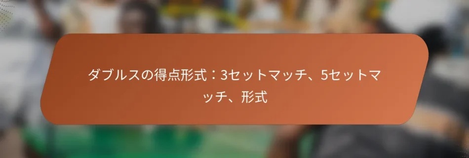 ダブルスの得点システムは、2人のチーム間の競技プレイを形成する上で重要な役割を果たし、チームワークと戦略に焦点を当てています。国際ルールや地域の適応において大きな違いがあるため、これらのシステムを理解することは、プレイヤーや主催者にとって不可欠であり、ゲームプレイのダイナミクスや全体的な試合体験に影響を与えます。 ダブルス得点システムの主な特徴は何ですか? ダブルス得点システムは、2人のチーム間の競技プレイを促進するために設計されており、チームワークと戦略を強調しています。これらのシステムは、ポイントの獲得方法、ゲームの勝利条件、試合の終了方法を定義し、全体的なゲームプレイのダイナミクスに影響を与えます。 ダブルス得点システムの定義と目的 ダブルス得点システムとは、2人のチームが関与する試合でポイントを集計するために使用されるルールと方法を指します。主な目的は、ゲームがどのように行われるかを規定する構造的な枠組みを作成し、競技における公平性と明確さを確保することです。 これらのシステムは、プレイのペースを維持し、チームが勝利を達成する方法を明確に理解できるようにします。一貫した得点方法を確立することで、プレイヤーはルールのあいまいさではなく、戦略とチームワークに集中できます。 一般的なルールと規則 ダブルス得点システムの一般的なルールには、以下が含まれます: 各チームは2人のプレイヤーで構成され、交互にサーブとレシーブを行います。 ポイントは通常、相手チームが指定されたコートの境界内でボールを返せなかった場合に得られます。 ゲームは通常、特定のポイント数(通常は11または21)に達するまで行われ、少なくとも2ポイントの差で勝利する必要があります。 テニスやバドミントンなどの多くのスポーツでは、ルールが地域の規制やトーナメントのガイドラインに基づいてわずかに異なる場合があります。プレイヤーは、自分のスポーツや地域に適用される特定のルールに慣れておくことが重要です。 得点形式のバリエーション ダブルスの得点形式は、スポーツや競技によって大きく異なる場合があります。たとえば、テニスでは、試合が従来の得点(15、30、40)を使用する場合や、デュース時に次のポイントがゲームを決定するノーアド得点のようなより現代的な形式を使用する場合があります。 対照的に、バレーボールのようなスポーツでは、ラリースコアリングを採用し、どちらのチームでもサーブに関係なくポイントを獲得できる場合があります。このバリエーションは、より速いペースのゲームや異なる戦略的アプローチを生む可能性があります。 これらのバリエーションを理解することは、プレイヤーにとって重要であり、試合中に攻撃的または防御的にプレイするタイミングに影響を与える可能性があります。 ゲームプレイと戦略への影響 ダブルスにおける得点システムは、ゲームプレイと戦略に大きな影響を与えます。たとえば、ラリースコアリング形式のスポーツでは、チームはすべてのラリーがポイントを生む可能性があるため、より攻撃的なスタイルを採用することがあります。 逆に、従来の得点システムは、チームがリードを維持するためにエラーを最小限に抑えることに焦点を当てるため、より慎重なアプローチを促す場合があります。プレイヤーは、勝利の可能性を最大化するために得点形式に基づいて戦略を適応させる必要があります。 さらに、得点システムを理解することで、チームは効果的なコミュニケーションと調整を発展させることができ、ダブルスプレイでの成功に不可欠な要素となります。 歴史的背景と進化 ダブルス得点システムの進化は、公平性と競技のバランスを求める必要性によって形作られてきました。初期のダブルス形式は標準化されたルールが欠けており、プレイや得点において不一致が生じていました。 時間が経つにつれて、さまざまなスポーツの統治機関は、観客体験を向上させ、競技の整合性を維持するために正式な得点システムを確立しました。この進化は、包括性やアクセスの推進を含むスポーツ発展の広範なトレンドを反映しています。 スポーツが進化し続ける中で、得点システムはプレイヤーや観客の変化するニーズに応じてさらに適応する可能性があり、ダブルスが魅力的でダイナミックな形式であり続けることを保証します。 国際的なダブルス得点システムはどのように異なるのか? 国際的なダブルス得点システムは、ルールや形式において大きく異なり、試合の進行や得点に影響を与えます。これらの違いを理解することは、プレイヤーや主催者にとって重要であり、戦略やゲームプレイのダイナミクスに影響を与える可能性があります。 国際的な得点システムの概要 国際的なダブルス得点システムには、従来の得点、ノーアド得点、スーパータイブレーカーのような形式が含まれます。各形式には、ポイントの