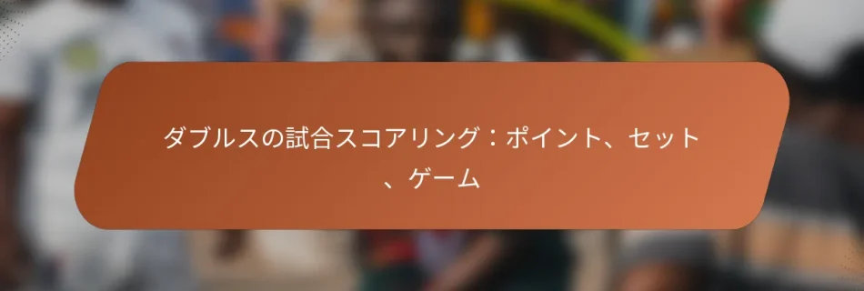 ダブルスの試合では、チームワークと選手間の調整が必要な独自のスコアリングダイナミクスが特徴です。実際の試合シナリオを検討することで、選手はポイントがどのように蓄積され、管理されるかをよりよく理解できます。また、ダブルスのスコアリングにおける一般的なミスを把握することで、混乱を防ぎ、よりスムーズなゲーム体験を確保することができます。 ダブルスの試合におけるスコアリングルールとは? ダブルスの試合では、スコアリングルールはシングルスと似ていますが、チームプレイに特有の考慮事項が含まれています。各チームは2人の選手で構成され、試合中にポイント、ゲーム、セットを追跡するために協力しなければなりません。 ダブルスにおけるスコアリングシステムの概要 ダブルスの試合は通常、シングルスと同じスコアリングシステムに従い、ゲームは4ポイントを取るまで行われ、勝つためには2ポイントのリードが必要です。試合はトーナメントのルールに応じて、従来の形式またはタイブレーク形式で行われることがあります。これらのシステムを理解することは、効果的なプレイにとって重要です。 以下は一般的なスコアリング形式の簡単な比較です: スコアリング形式 ゲームを勝つためのポイント セットを勝つためのゲーム数 タイブレーク 従来型 4(2ポイント差で勝つ必要あり) 6 はい、6-6の時 タイブレーク 7ポイント先取(2ポイント差で勝つ必要あり) 3セットまたは5セットのベスト はい、6-6の時 ダブルスとシングルスのスコアリングの違い ダブルスとシングルスのスコアリングの主な違いは、チームワークの側面にあります。ダブルスでは、選手は誰がどのショットを打つかを決定するために効果的にコミュニケーションを取る必要があり、ゲームの流れに影響を与えます。また、サービスのローテーションはより複雑で、チームの各選手が順番にサーブを行います。 もう一つの重要な違いはコートのカバー範囲です。ダブルスの試合はより広いコートで行われるため、戦略やスコアリングのダイナミクスに影響を与える可能性があります。チームはしばしば自分たちの強みを最大限に活かし、相手の弱点を突くために異なる戦術を採用します。 ダブルスのスコアリングで使われる一般的な用語 ダブルスのスコアリングで使用される用語を理解することは、効果的なコミュニケーションとゲームプレイに不可欠です。以下は一般的な用語です: デュース: 40-40のスコアで、ゲームを勝つためには2ポイント連続で勝つ必要があります。 アドバンテージ: デュースの後に獲得したポイントで、次のポイントでゲームを勝つ機会を与えます。 ブレークポイント: 受けるチームが相手のサーブでゲームを勝つチャンスがある状況。 セットポイント: 獲得すればチームがセットを勝つことができるポイント。 試合中のスコアの記録方法 ダブルスの試合でスコアを記録するには、注意とチームワークが必要です。選手はポイント、ゲーム、セットを追跡する方法に合意するべきです。一般的なアプローチは、各サーブの前にスコアを口頭で発表し、全員が同じ情報を共有することです。 視覚的にスコアを記録するためにスコアシートやアプリを使用することも役立ちます。これにより、特に緊張した瞬間に混乱を防ぐことができます。ゲームやセットの後にスコアを更新することを忘れずに、明確さを保ちましょう。 サービスローテーションがスコアリングに与える影響 サービスローテーションはダブルスの試合において重要であり、戦略やスコアリングに影響を与えます。チームの各選手はあらかじめ決められた順序でサーブを行い、これがポイントの獲得や失敗に影響を与える可能性があります。チームは自分たちの強みを最大限に活かし、相手のアドバンテージを最小限に抑えるためにサービスゲームを戦略的に考えるべきです。 また、選手は自分のサービングポジションやコートのレイアウトを意識する必要があります。異なる側からサーブすることで試合のダイナミクスが変わり、ポイントの獲得方法に影響を与えることがあります。定期的にサービスローテーションを練習することで、チームは試合中により効率的かつ効果的になることができます。 ダブルスにおけるタイブレークルールの理解 タイブレークは、スコアが6-6に達したときにセットの勝者を決定するために使用されます。ダブルスでは、タイブレークは特定の形式に従い、チームが2ポイントごとにサーブを交互に行います。最初に7ポイントに達し、2ポイントのリードを持つチームがタイブレークとセットを勝ち取ります。 タイブレーク中は、プレッシャーが強くなるため、チーム間のコミュニケーションが重要です。選手は自分の強みに集中し、冷静さを保って勝利を確保する必要があります。タイブレークルールを理解し、練習することで、重要な試合状況でのチームのパフォーマンスが大幅に向上します。 ダブル