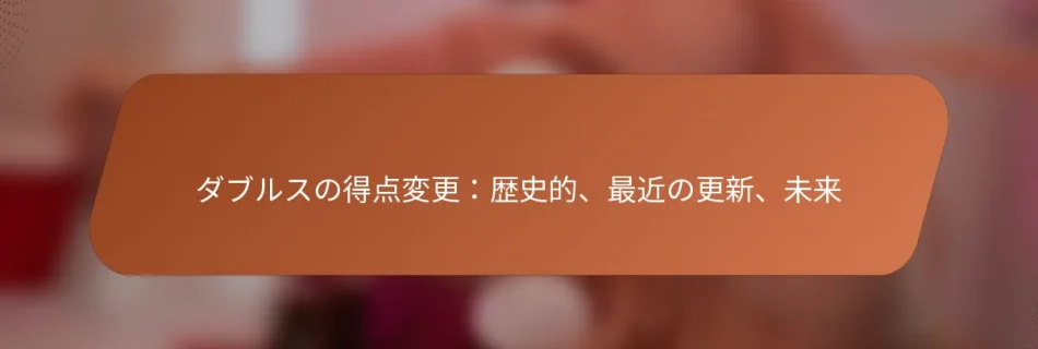 ダブルスのスコアリングは、ゲームのダイナミクスと魅力を形作る重要な歴史的変化を経てきました。最近の更新では、試合のペースと興奮を高めるための新しいルールが導入されており、将来的には選手のパフォーマンスと観客のエンゲージメントの両方を優先する革新的なフォーマットへの移行が予測されています。 ダブルスのスコアリングにおける歴史的変化とは? ダブルスのスコアリングにおける歴史的変化は、ゲームのプレイ方法や楽しみ方に大きな影響を与えてきました。これまでの数年間で、競争力と観客のエンゲージメントを高めるためにさまざまな調整が行われ、スポーツの進化する基準を反映しています。 ダブルスのスコアリング進化における重要なマイルストーン 試合をスピードアップするために、20世紀後半にノーアドスコアリングシステムが導入されました。 1970年代にタイブレークが採用され、接戦のセットで決定的なフィニッシュが可能になりました。 第三セットを置き換えるために、さまざまなトーナメントでスーパータイブレークフォーマットが実施されました。 全米オープンやオーストラリアオープンなどの主要イベントで、伝統的なスコアリングからより現代的なフォーマットへの移行が行われました。 ゲームプレイに対する歴史的変化の影響 ダブルスのスコアリングの変更は、試合のペースを速め、戦略的なプレイを増加させました。たとえば、ノーアドスコアリングの導入により、すべてのポイントがより重要になり、選手は攻撃的な戦術を採用せざるを得なくなりました。 さらに、タイブレークの使用により、試合の長さが短縮され、選手はエネルギーを温存し、高リスクのポイントに集中できるようになりました。この変化は、試合がより予測可能な時間枠で終了するため、観客にとってもダブルスがより魅力的になりました。 歴史的なスコアリング変更の背後にある理由 スコアリング変更の主な理由の一つは、視聴者の関心を維持する必要性です。テレビやライブオーディエンスが増える中、スポーツの統括団体は、試合を魅力的で簡潔に保つ重要性を認識しました。 さらに、選手のフィットネスとトレーニングの進化がスコアリングシステムに影響を与えています。現代のアスリートはより良いコンディションを維持しており、長いラリーやよりダイナミックなプレイが可能になっているため、これらの変化を反映するためにスコアリングの調整が必要です。 初期と現代のダブルススコアリングシステムの比較 側面 初期のスコアリング 現代のスコアリング ゲーム構造 伝統的なアドスコアリング ノーアドスコアリング タイブレーク 一般的に使用されていない 決定セットで標準 試合の長さ 長い試合 短く、よりダイナミックな試合 戦略 ディフェンシブプレイ 攻撃的で高リスクな戦略 主要トーナメントがスコアリングルールに与える影響 主要トーナメントは、ダブルスのスコアリングルールを形作る上で重要な役割を果たしてきました。ウィンブルドンや全米オープンのようなイベントは、新しいスコアリングフォーマットを実施する最前線に立ち、他の競技にも影響を与えています。 たとえば、全米オープンが最終セットにスーパータイブレークを採用する決定を下したことで、他のトーナメントも同様のフォーマットを検討するようになり、試合の解決が速くなる傾向を反映しています。この適応性は、著名なイベントがスポーツに広範な変化をもたらすことができることを示しています。 ダブルスのスコアリングに関する最近の更新は何ですか? ダブルスのスコアリングに関する最近の更新では、試合のペースと興奮を高めることを目的とした新しいルールが導入されました。これらの変更は、タイブレークフォーマットやサービスルールの修正に焦点を当てており、チームがプレイ中に戦略を立てる方法に影響を与えています。 最近のスコアリングルール変更の概要 最近数年で、ダブルスの試合においていくつかの重要なスコアリングルールの変更が実施されました。重要な更新の一つは、いくつかのトーナメントで伝統的な第三セットを置き換える10ポイントマッチタイブレークの導入です。この変更は、試合の時間を短縮し、観客の関心を維持することを目的としています。 さらに、一部のトーナメントではノーアドスコアリングシステムが採用されており、最初に4ポイントに達したチームがゲームに勝利します。これにより、より攻撃的なプレイが促進され、よりダイナミックなラリーが生まれる可能性があります。 10ポイントマッチタイブレークが特定のトーナメントで第三セットを置き換えます。 ゲームをスピードアップするためにノーアドスコアリングシステムが導入されました。 変更は視聴者のエンゲージメントと試合の興奮を高めることを目指しています。 最近の更新が選手に与える影響 最近のスコアリング更新は、ダブルスの試合における選手