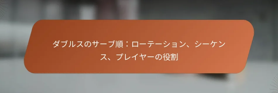 ダブルスのテニスにおけるサーブの順番は、試合中に選手がサーブを行う順序を決定する重要な要素です。この構造化されたローテーションは、公平性を確保するだけでなく、各選手がサーブとレシーブの両方に積極的に関与できるようにし、ゲームの戦略的ダイナミクスを高めます。 ダブルスのテニスにおけるサーブの順番とは? ダブルスのテニスにおけるサーブの順番は、試合中に選手がサーブを行う事前に決められた順序を指します。この順番は、公平性とゲームプレイの構造を維持するために重要であり、各選手が特定のローテーションルールに従いながらサーブする機会を持つことを保証します。 ダブルスにおけるサーブの順番の定義 ダブルスにおけるサーブの順番は、試合中の任意の時点でどの選手がサーブを行うかを定めます。各チームは2人の選手で構成され、サーブの順番は試合全体を通じて守られ、各ゲームの後に選手間でローテーションします。これにより、両選手がサーブの役割に貢献し、チームワークと戦略を促進します。 通常、試合で最初にサーブを行った選手は、ゲームに負けるまでそのチームのサーブを続けます。その後、サーブは対戦チームに移り、順序は続きます。このローテーションは、ゲームの流れを維持し、すべての選手が平等に参加することを保証するために不可欠です。 ゲームプレイにおけるサーブの順番の重要性 サーブの順番は、いくつかの理由から重要です。まず、試合のリズムを維持するのに役立ち、選手がいつサーブを行い、いつレシーブを行うかを予測できるようにします。この予測可能性は、選手がサーブの位置に基づいてアプローチを計画できるため、集中力と戦略を高めることができます。 さらに、サーブの順番は試合のダイナミクスに影響を与える可能性があります。たとえば、強力なサーバーは、ゲームに対する影響を最大化するために戦略的に配置されることがあります。サーブの順番を理解し、遵守することは、プレイ中の争いごとや混乱を防ぎ、すべての選手にとってスムーズな体験を保証します。 ダブルスとシングルスのサーブの順番の違い シングルスのテニスでは、1ゲームにつき1人の選手がサーブを行うため、サーブの順番は簡素化されます。対照的に、ダブルスでは各チームの2人の選手間での調整が必要であり、より複雑なサーブの順序が生じます。各選手は特定の順番でサーブを行い、各ゲームの後にパートナーと交互にサーブします。 さらに、ダブルスでは、サーブ中の選手のコート上の位置がシングルスと比較して大きく異なる場合があります。ダブルスのチームは、サーブとボレーや素早いリターンのためのポジショニングなど、それぞれの強みを活かす戦略を採用することがよくあります。これにより、ダブルスのサーブの順番にさらなる戦略的な層が加わります。 ローテーションルールの概要 ダブルスにおけるローテーションルールは、試合中に選手がどのようにサーブを交代するかを決定します。各ゲームの後、サーブは対戦チームに切り替わり、各チーム内では選手が次にサーブを行う選手を交互に決めなければなりません。このローテーションは試合の期間中続き、各選手がサーブを行う機会を持つことを保証します。 通常、試合で最初にサーブを行った選手は、パートナーがサーブを行った後に再びサーブを行います。このローテーションは、バランスと公平性を維持し、両選手がチームのパフォーマンスに平等に貢献できるようにします。これらのルールを理解することは、効果的なゲームプレイと戦略にとって不可欠です。 試合におけるサーブの順序 ダブルスの試合におけるサーブの順序は、特定のパターンに従います。最初に、1チームの1人の選手がサーブを行い、そのゲームが終了した後、サーブは対戦チームに移ります。サーブを行うチームの各選手は、試合開始時に確立された順序でサーブを行わなければなりません。 最初のゲーム:選手Aがサーブを行います。 2番目のゲーム:選手Cがサーブを行います(対戦チームから)。 3番目のゲーム:選手Bがサーブを行います(選手Aのパートナー)。 4番目のゲーム:選手Dがサーブを行います(選手Cのパートナー)。 この順序は試合全体を通じて続き、すべての選手がサーブを行い、ゲームに積極的に参加する機会を持つことを保証します。この順序を守ることは、試合の構造と公平性を維持するために重要です。 ダブルスの試合中に選手はどのようにローテーションしますか? ダブルスの試合では、選手は各ゲームの後にサーブの順番とポジションをローテーションし、公平性と戦略を維持します。このローテーションにより、各選手がコートの両側からサーブとレシーブを行うことができ、ゲームの競争的な性質が高まります。 各ゲーム後のローテーションプロセス 各ゲームの後、前のゲームで最初にサーブを行ったチームは役割を交代します。サーブを行った選手は今度は