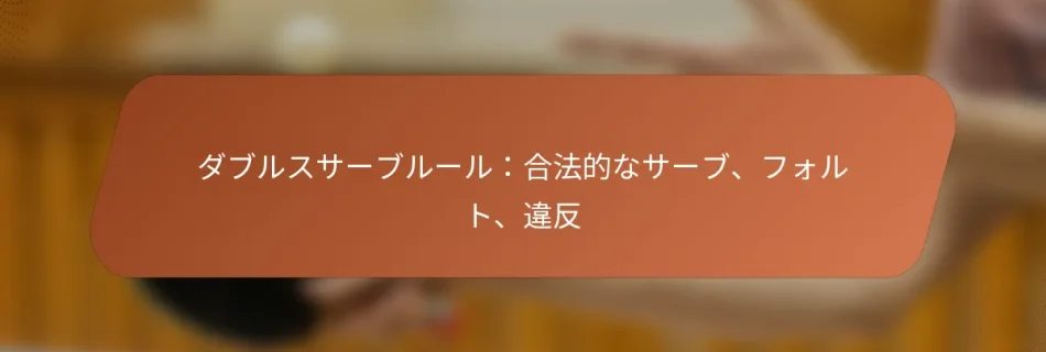 ダブルスのテニスにおいて、サーブはサーバーの位置、ボールの軌道、サーブの動作に関する特定のルールに従うことを含みます。これらの規則に精通していることは、選手が一般的なミスや違反を避けるために不可欠であり、これがゲームの結果に大きな影響を与え、公正なプレーを維持します。 ダブルスのテニスにおける合法的なサーブとは何ですか? ダブルスのテニスにおける合法的なサーブは、サーバーが自分の位置、ボールの軌道、サーブ中の行動に関する特定のルールに従うことを要求します。これらの規則を理解することで、選手はミスや違反を避け、公正で競争力のあるゲームを確保できます。 サーバーの位置とスタンスの要件 サーバーはベースラインの後ろに立ち、サイドラインの想像上の延長線内にいる必要があります。サーブを打つ瞬間、両足はラインの後ろにあり、ボールが打たれるまでサーバーはラインに足を踏み入れたり、越えたりしてはいけません。この位置取りはサーブの整合性を維持するために重要です。 さらに、サーバーはダブルスコートの幅の範囲内であればどこにでも立つことができ、戦略的な配置が可能です。ただし、彼らのスタンスが相手チームのサーブを受ける能力に干渉しないようにする必要があります。 ボールの軌道と接触点 合法的なサーブは、相手のサービスボックスに対して斜めに飛ばさなければなりません。ボールはベースラインの後ろで打たれ、ネットの平面を越える前に打たれなければなりません。サーブの接触点は理想的には腰の上で、より効果的な軌道を可能にします。 選手はしばしば高くボールをトスしてスピンとスピードを生み出し、ポイントを獲得するチャンスを高めます。サーブ中にボールがネットに触れてはいけませんが、触れた場合でも正しいサービスボックスに着地すればレットサーブと見なされ、再プレイされます。 サーブ中の必要な行動 合法的なサーブを実行するために、サーバーはまずスコアを発表し、両チームが現在のゲーム状況を把握できるようにします。その後、サーバーはトスとボールを打つスイングを含む中断のない連続した動作を行わなければなりません。 選手は突然の動きや一時停止を避けるべきであり、これがミスにつながる可能性があります。一般的な落とし穴は、サーブの動作をスムーズに完了できないことで、これがサーブのルール違反につながることがあります。 サービスボックスの境界とルール ダブルスのテニスにおけるサービスボックスは、幅21フィート、奥行き13.5フィートです。サーバーはこのボックス内にボールを着地させることを目指さなければなりません。このボックスはコートの各側に対して2つの等しい半分に分かれています。これらの境界を越えて打つと、ミスとなります。 選手は、サービスボックスの寸法がシングルスのプレーとは異なることを認識しておくべきです。シングルスのボックスは狭くなっています。これらの境界を理解することは、ダブルスの試合における効果的なサービング戦略にとって不可欠です。 シングルスとダブルスのサーブの違い ダブルスのテニスでは、サーバーはシングルスに比べてターゲットにするエリアが広く、より戦略的なサーブの選択肢が可能です。ダブルスコートにはアリーが含まれており、相手を不意打ちにするサーブのための追加のスペースを提供します。 もう一つの重要な違いは、サーバーが意図したサーブの種類と配置についてパートナーとコミュニケーションを取る責任があることです。このチームワークはサーブの効果を高め、次のプレーを設定するのに役立ちます。 ダブルスのサーブ中の一般的なミスは何ですか? ダブルスのサーブ中の一般的なミスには、フットファルト、不適切なボールトス、サーブ動作の違反が含まれます。これらのミスを理解することは、選手が合法的なサーブを維持し、ゲームの結果に影響を与える可能性のあるペナルティを避けるために重要です。 フットファルトとその影響 フットファルトは、選手がボールを打つ前にベースラインに足を踏み入れると発生します。この違反は自動的にミスとなり、サーブは無効と見なされます。選手はボールが打たれるまで両足がベースラインの後ろにあることを確認する必要があります。 フットファルトは、特にプレッシャーのかかる状況では選手にとって特に検出が難しい場合があります。フットファルトのリスクを最小限に抑えるために、選手はサーブのスタンスと動作を練習し、足の位置に焦点を当てるべきです。良いルールは、サーブが実行されるまで後ろ足をしっかりと地面に置いておくことです。 ダブルスでは、両選手が自分の位置を意識し、フットファルトを防ぐために効果的にコミュニケーションを取るべきです。一方の選手が常にフットファルトを犯すと、チームのリズムや自信が乱れる可能性があります。 不適切なボールトスのシナリオ 不適切