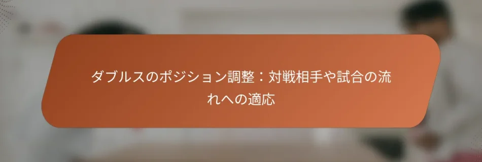 ダブルスのポジション調整は、相手や試合のダイナミクスに応じてチームのパフォーマンスを最大化するために重要です。相手の傾向を観察し、パートナーとの明確なコミュニケーションを維持することで、選手は効果的にポジションをシフトし、攻撃と防御の戦略を強化できます。試合の流れに適応することは、個々のパフォーマンスを向上させるだけでなく、試合の結果を決定づける要因にもなり得ます。 ダブルスのポジション調整の重要な原則は何ですか? ダブルスのポジション調整は、相手や試合の流れに適応することでチームのパフォーマンスを最適化するための重要な戦略です。重要な原則には、コートカバレッジのダイナミクスを理解すること、パートナーとの効果的なコミュニケーション、相手の動きを読むこと、攻撃と防御のポジションのバランスを取ること、試合のテンポに適応することが含まれます。 コートカバレッジのダイナミクスを理解する ダブルスにおけるコートカバレッジは、両選手が自分のエリアを効果的に管理し、ギャップを最小限に抑え、防御能力を最大化することを含みます。各選手は、自分の担当ゾーンとボールの位置、相手のポジショニングに応じてどのようにシフトするかを認識しておく必要があります。これには、角度や動きのパターンを鋭く理解することが求められます。 最適なカバレッジを実現するために、選手はスタッガードフォーメーションを採用することができます。これは、一方の選手がネットに近い位置に配置され、もう一方がベースラインに留まる形です。このセットアップにより、さまざまなショットに迅速に対応しながら、堅実な防御を維持できます。さらに、選手は一緒にシフトしてコートを効率的にカバーする練習をするべきです。 パートナーとのコミュニケーションの重要性 パートナー間の効果的なコミュニケーションは、成功するダブルスプレーにとって重要です。明確な口頭の合図や非言語的なサインは、選手が動きや戦略を調整するのに役立ち、速いペースの交換中の混乱の可能性を減らします。ショットのためのコールシステムを確立することで、チームワークを強化できます。 パートナーは試合前に自分たちの強みと弱みを話し合い、利点を活かした戦略を立てるべきです。試合中に定期的にチェックインすることで、相手のパフォーマンスや試合の流れに基づいて戦術を調整することもできます。 相手の動きと意図を読む 相手の動きを読むことは、次のショットを予測し、それに応じてポジショニングを調整するために重要です。選手は相手のボディランゲージ、ラケットの位置、フットワークを観察して、ボールがどこに行くかを予測する必要があります。この認識は、迅速な反応とより良いポジショニングを可能にします。 たとえば、相手が体重を前方に移動させる場合、それはネットに近づくことを示唆しているかもしれません。これらの合図を認識することで、選手は事前にポジションを調整し、ショットをインターセプトし、ラリーのコントロールを維持するチャンスを高めることができます。 攻撃と防御のポジショニングのバランスを取る ダブルスでは、攻撃と防御のポジショニングの適切なバランスを見つけることが成功のために不可欠です。選手は、ネットで攻撃的な姿勢を取るべき時と、より防御的なポジションに退くべき時を知っておく必要があります。このバランスは、試合の状況や相手の強みに応じて変化します。 たとえば、相手が常に強力なショットを打っている場合、プレッシャーを吸収するためにより防御的な姿勢が必要になるかもしれません。逆に、弱いリターンが予想される場合、選手は前進してポイントをコントロールする準備をするべきです。試合のダイナミクスを定期的に評価することで、このバランスを維持することができます。 試合の流れとテンポに適応する 試合の流れとテンポに適応することは、ダブルスで競争力を維持するために重要です。選手は試合が進行するペースを意識し、それに応じて戦略を調整する必要があります。速いペースの試合では迅速な意思決定と攻撃的なプレーが求められ、遅いテンポではより戦略的なポジショニングが可能になります。 効果的に適応するために、選手は呼吸やメンタル状態に集中し、冷静で反応的であることを確保するべきです。さらに、勢いの変化を認識することで、チームはチャンスを活かしたり、必要に応じて再編成したりすることができます。柔軟性を保ち、変化にオープンでいることがダブルスプレーで成功する鍵です。 選手は試合中にどのように効果的にポジショニングを調整できますか? 選手は相手を注意深く観察し、試合の流れに基づいて戦略を調整することで、試合中に効果的にポジショニングを調整できます。これには、相手の傾向を認識し、スコアに基づいてシフトを行い、チームメイトとコミュニケーションを取ること