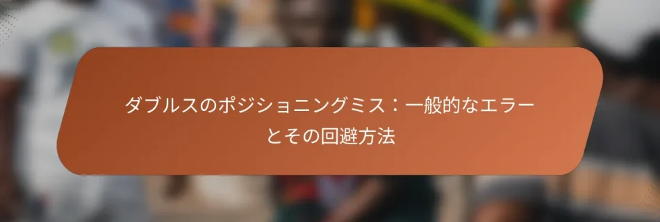 ダブルスのテニスでは、ポジショニングのミスがチームのコート上での効果を大きく妨げることがあります。一般的なエラーは、コミュニケーションの不備やコートカバレッジの不足から生じますが、意識と練習によって、選手は協調性やプレーを大幅に改善することができます。明確なコミュニケーションと戦略的なフォーメーションに焦点を当てることで、チームは全体的なパフォーマンスを向上させ、これらの落とし穴を避けることができます。 ダブルスの一般的なポジショニングミスとは? ダブルスの一般的なポジショニングミスは、チームのパフォーマンスに大きな影響を与える可能性があります。これらのエラーは、コミュニケーションの不備、不適切なコートカバレッジ、ネットポジションの無視など、さまざまな要因から生じます。これらのミスを理解し対処することで、協調性や全体的なプレーを向上させることができます。 パートナー間のコミュニケーションの不備 コミュニケーションの不備は、ダブルスプレーでよく見られる問題で、混乱やチャンスの逸失につながることがあります。パートナーはラリー中に意図を示すための明確な合図や口頭の合図を確立する必要があります。たとえば、「マイン」や「ユアーズ」と呼びかけることで、衝突を避け、どちらの選手がショットを打つかを確認できます。 さらに、試合前に戦略を話し合うことで、両選手の期待を一致させることができます。プレー中に定期的に確認を行うことで、相手の動きに基づいて戦術を調整することも可能です。コミュニケーションの不備を最小限に抑えるために、パートナーは頻繁に一緒に練習し、お互いのプレースタイルを理解することが重要です。 不適切なコートカバレッジ 不適切なコートカバレッジは、各選手の責任に対する認識の欠如から生じることが多いです。ダブルスでは、通常、一人の選手がネットをカバーし、もう一人がベースラインをカバーします。この構造を維持できないと、相手に利用される隙間が生じる可能性があります。選手は自分のカバレッジエリアをコミュニケーションし、お互いの足を踏まないようにする必要があります。 コートカバレッジを改善するために、選手はシンプルなポジショニングのシステムを使用できます。たとえば、一方のパートナーがネットに移動すると、もう一方は中央に少し移動して、潜在的なパッシングショットをカバーするべきです。このポジショニングを練習することで、選手はラリー中にどこにいるべきかを直感的に理解できるようになります。 ラリー中の不一致なポジショニング 不一致なポジショニングは、チームのリズムを乱し、攻撃に対して脆弱にする可能性があります。選手は、ボールの位置や相手の動きに基づいてポジションを調整し、バランスの取れたフォーメーションを維持することを目指すべきです。たとえば、ボールが一方に打たれた場合、その側の選手はネットに近づき、もう一方の選手はベースラインをカバーするために後ろに移動するべきです。 一貫したポジショニング戦略を確立することで、選手はお互いの動きを予測しやすくなります。さまざまなシナリオを練習することで、試合中の適応能力を高めることができます。良いルールは、常に三角形のフォーメーションを維持することで、より良いカバレッジとサポートを可能にします。 ネットポジションの無視 ネットポジションの無視は、チームがゲームをコントロールする能力を大きく制限する可能性があります。ネットにいる選手は、ボレーをインターセプトし、相手にプレッシャーをかける重要な役割を果たします。この選手が後ろにいると、ショットをカットオフしたり、プレーを支配する機会を逃してしまいます。 効果的なネットポジションを維持するために、選手は短いボールを予測したらすぐに前に移動することを目指すべきです。素早い反応とポジショニングを練習することで、選手はネットでよりアグレッシブになることができます。役立つヒントは、足元を軽く保ち、反応する準備をすることで、どんな隙間にも対応できるようにすることです。 相手の戦略に適応しない 相手の戦略に適応しないことは、予測可能なプレーにつながり、相手チームに簡単なポイントを与えることになります。選手は相手の強みと弱みを観察し、それに応じてポジショニングや戦術を調整する必要があります。たとえば、相手が頻繁に一人の選手を狙う場合、もう一方の選手は追加のサポートを提供するためにシフトするべきです。 戦略の柔軟性は、ダブルスでの成功の鍵です。選手は、さまざまな相手スタイルに備えるために、異なるフォーメーションやプレーを練習できます。一般的なアプローチは、試合の流れに応じて攻撃的と防御的な戦略を切り替え、相手を混乱させ、バランスを崩すことです。 選手はどのようにダブルスのポジショニングミスを避けることができま