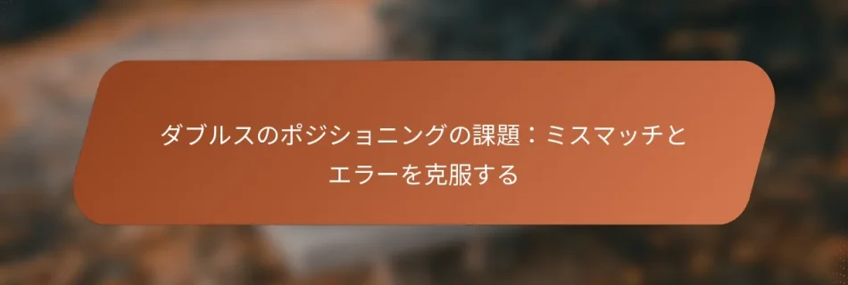 ダブルスのポジショニングの課題は、選手の役割の不一致、コミュニケーションエラー、そして空間認識の不足から生じることが多く、これがパフォーマンスを妨げ、チャンスを逃す原因となります。これらの問題に対処するために、選手はコミュニケーションを強化し、役割を明確に定義し、一貫した練習に取り組むことで、最終的にコート上でのチームワークと調整を向上させることができます。 ダブルスのポジショニングにおける一般的な課題は何ですか? ダブルスのポジショニングの課題は、選手の役割の不一致、コミュニケーションエラー、そして空間認識の欠如からしばしば生じます。これらの問題は、プレイ中の効果的な戦略やチャンスを逃す原因となり、全体的なパフォーマンスに影響を与えます。 選手の役割の不一致を理解する 選手の役割の不一致は、パートナーが自分の強みと弱みを効果的に調整しないときに発生します。例えば、一方の選手がより攻撃的で、もう一方が防御的なスタイルを好む場合、コート上で混乱を招くことがあります。 これらの不一致を克服するために、チームは試合前に各選手のスキルを評価し、明確な役割を設定する必要があります。これには、一方の選手を主なネットプレイヤー、もう一方をベースラインプレイヤーとして指定し、両者が自分の責任を理解することが含まれます。 特定の役割に焦点を当てた定期的な練習セッションは、これらのダイナミクスを強化し、選手が自分のポジションに慣れ、試合中の調整を改善するのに役立ちます。 コミュニケーションエラーを特定する ダブルスにおけるコミュニケーションエラーは、ショットを逃したり、ポジショニングが悪くなったりする原因となります。選手は、ポジションを切り替えるときやコートの特定のエリアをカバーするときなど、自分の意図を常に声に出して伝える必要があります。 シンプルな口頭の合図を実施することで、コミュニケーションを強化できます。例えば、「マイン」や「ユアーズ」といったフレーズを使用することで、誰がショットを打つのかを明確にし、混乱を減らし、チームワークを向上させることができます。 さらに、手のジェスチャーやアイコンタクトなどの非言語的な合図も、速いラリー中にメッセージを迅速に伝えるのに効果的です。 空間認識の問題を認識する 空間認識の問題は、選手が互いの位置や相手に対する位置を理解できないときに発生します。これにより、コートの一部が混雑したり、相手が利用できる空きスペースができたりします。 空間認識を改善するために、選手はコートのカバレッジとポジショニングを強調したドリルを練習する必要があります。例えば、シャドウイングドリルは、選手が自分の動きを視覚化し、ラリー中に適切な間隔を維持する方法を理解するのに役立ちます。 選手が常にコートをスキャンすることを奨励することも、彼らの認識を高め、相手の動きを予測し、それに応じてポジショニングを調整できるようにします。 反応時間の不一致に対処する 反応時間の不一致は、ダブルスにおけるチームのパフォーマンスに大きく影響します。一方の選手が他方よりも反応が遅れると、チャンスを逃したり、コートのカバレッジが不十分になったりすることがあります。 これに対処するために、選手は反射神経を改善することに焦点を当てたドリルに取り組むことができます。例えば、リアクションボールのエクササイズやクイックフットワークドリルなどです。これらの活動は、反応時間を鋭くし、全体的な敏捷性を向上させるのに役立ちます。 さらに、定期的に一緒に練習することで、選手の反応を同期させ、試合中にお互いの動きを予測しやすくなります。 相手のポジショニング戦略を評価する 相手のポジショニング戦略を理解することは、効果的なダブルスプレイにとって重要です。相手がどのようにポジショニングしているかを分析することで、あなたのチームが利用できる弱点を明らかにすることができます。 選手は、ウォームアップや初期のラリー中に相手のフォーメーションや動きを観察し、パターンを特定する必要があります。例えば、相手がネットに集まることが多い場合、ベースラインを狙うことでより良い結果が得られるかもしれません。 相手の戦略に基づいてポジショニングを調整することで、ポイントを獲得する機会を生み出すことができます。パートナーと観察結果を定期的に話し合うことで、アプローチを洗練させ、全体的なチームパフォーマンスを向上させることができます。 選手はダブルスのポジショニングの不一致をどのように克服できますか? 選手は、コミュニケーションを強化し、役割を定義し、一緒に練習することで、ダブルスのポジショニングの不一致を克服できます。効果的な戦略はエラーを最小限に抑え、コート上での全体的なパフォーマンスを向上させることができます。 コミュニケーション