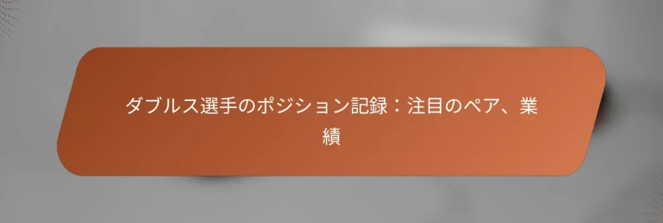 テニスの世界では、注目すべきダブルスのペアが印象的な勝敗記録、グランドスラムの勝利、独自のプレースタイルを通じて不朽の足跡を残しています。これらのチームは成功に必要な相乗効果を体現しており、ダブルスプレーの進化を形作る素晴らしいマイルストーンを達成しています。主要な選手の統計や業績を調べることで、これらのダイナミックなパートナーシップの効果と影響についての洞察を得ることができます。 注目すべきダブルスペアの主要な選手統計は何ですか? 注目すべきダブルスペアの主要な選手統計には、勝敗記録、獲得したタイトル、パフォーマンス指標、ランキングの実績が含まれます。これらの統計は、競技プレーにおけるさまざまなチームの効果と成功についての洞察を提供します。 トップダブルスチームの勝敗記録 勝敗記録は、ダブルスチームのパフォーマンスを示す重要な指標です。強力な勝敗記録は、チームが高いレベルで競争する能力と相関し、一貫性とスキルを示します。たとえば、エリートチームは勝率が70%を超えることがある一方で、新興ペアはシナジーを発展させる中で50%に近い記録を持つことがあります。 勝敗記録を追跡することで、特定の対戦相手や特定のトーナメントに対するチームのパフォーマンスの傾向を特定するのに役立ちます。この情報は、コーチやアナリストが今後の試合の戦略を準備する際に貴重です。 注目すべきペアが獲得したタイトル ダブルスのペアが獲得したタイトルの数は、彼らの成功とスポーツにおける支配力を反映しています。注目すべきチームは、グランドスラム、ATP、WTAのイベントを含むさまざまなトーナメントで複数のチャンピオンシップを獲得することがよくあります。たとえば、いくつかの伝説的なペアは、20以上のタイトルを一緒に獲得し、ダブルスサーキットで強力な存在感を確立しています。 獲得したタイトルは、競技レベルによっても分類でき、グランドスラムの勝利が最も権威あるものとなります。これらの高リスクのトーナメントで成功を収めることは、チームのスポーツにおけるレガシーを固めることがよくあります。 ダブルス選手のパフォーマンス指標 ダブルス選手のパフォーマンス指標には、コート上での効果を評価するさまざまな統計が含まれます。主要な指標には、サーブ率、リターン率、ネットプレーの成功率が含まれます。高パフォーマンスのチームは、通常、強力なサーブ&ボレー戦略を示し、成功した試合ではサーブ率が60%を超えることがよくあります。 さらに、エースやアンフォーストエラーなど、個々の選手の貢献を分析することで、チームのダイナミクスについてのより深い洞察を得ることができます。これらの指標を理解することで、チームは戦略を洗練させ、全体的なパフォーマンスを向上させることができます。 成功したチームのランキング実績 ダブルスのランキング実績は、パフォーマンス指標、勝敗記録、獲得したタイトルの組み合わせによって決まります。成功したチームは、ATPやWTAのトップランキングに位置することが多く、最高のペアは頻繁に1位の座を入れ替えます。高いランキングを達成することは、チームの成功を反映するだけでなく、トーナメントでのシードにも影響を与えます。 トップランキングを維持するには、複数のトーナメントでの一貫したパフォーマンスが必要であり、シーズンを通じて良いパフォーマンスを発揮することがチームにとって不可欠です。これにより、マッチアップやタイトル獲得の全体的なチャンスに影響を与える可能性があります。 ダブルス選手統計の歴史的傾向 ダブルス選手統計の歴史的傾向は、プレースタイル、戦略、全体的な競争環境の変化を明らかにします。年々、ダブルス選手の運動能力とスキルレベルが顕著に向上しており、多くの選手がネットプレーヤーやベースラインヒッターなどの特定の役割に特化しています。 さらに、機器やトレーニング方法の進化がパフォーマンス指標の変化に寄与しています。これらの傾向を分析することで、チームは現代のゲームに適応し、時代を超えて成功した戦略を特定することができます。 どの注目すべきダブルスペアが最も大きな影響を与えましたか? 注目すべきダブルスペアは、その独自のスタイル、グランドスラムの勝利、記憶に残る試合を通じてテニスの風景を大きく形作ってきました。これらのチームは、驚異的な成功を収めただけでなく、ダブルスプレーの進化とその戦略的アプローチにも影響を与えています。 テニス史における有名なダブルスチーム 最も有名なダブルスチームには、1980年代に支配的だったジョン・マッケンローとピーター・フレミング、数々の記録を持ち、複数のグランドスラムタイトルを獲得したブライアン兄弟が含まれます。他の伝説的なペア、例えばマルティナ・ナブラチロワとパム・シュライバーは、卓越した相乗効果と戦術的な巧妙さを示し