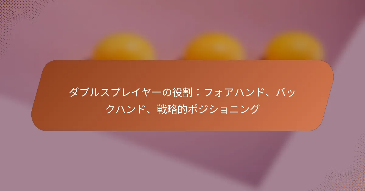 ダブルスにおける選手の役割は、試合中に各選手が担う明確な責任とポジションを指します。これらの役割はパフォーマンスを最適化し、パートナー間の効果的な協力を確保するために設計されています。これらの役割を理解することで、選手はお互いの動きを予測し、適切に反応することができます。
